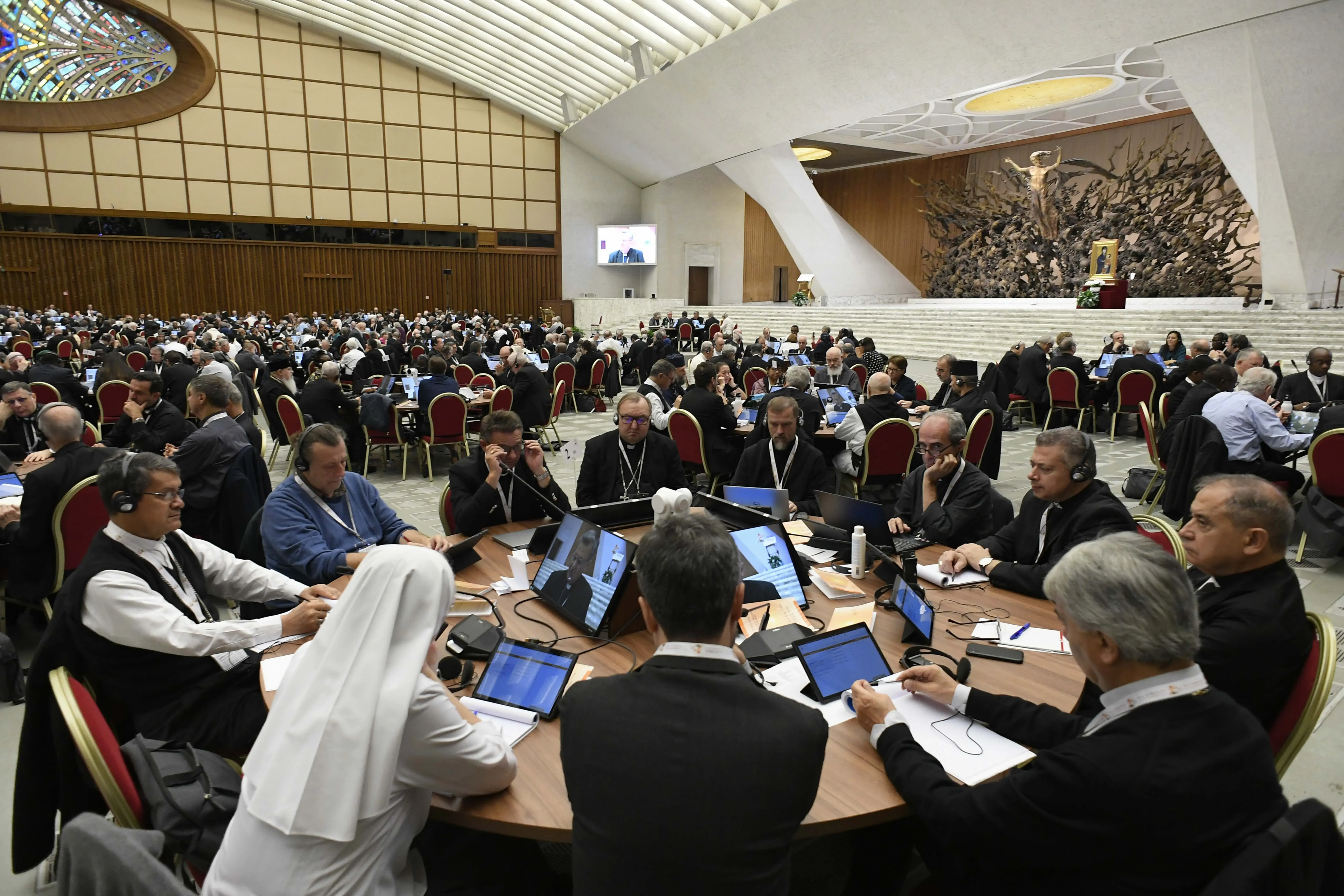 Delegates to the Synod on Synodality meet in the final days of the synod, Oct. 25, 2023.
