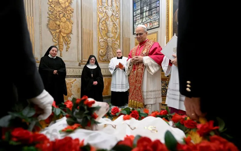Pope Leo XIV meets a pair of lambs blessed for the feast of the Roman virgin and martyr St. Agnes in the Urban VIII Chapel in the Vatican’s Apostolic Palace on Jan. 21, 2026. | Credit: Vatican Media