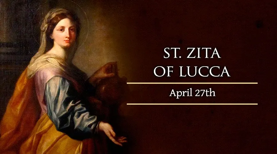 After foretelling her own death and spiritually preparing for it, Saint Zita died in Lucca on April 27, 1271. Many residents regarded her as a saint and began to seek her intercession, to which a large number of miracles were attributed. Some writers even began referring to the city of Lucca as “Santa Zita” in her honor.