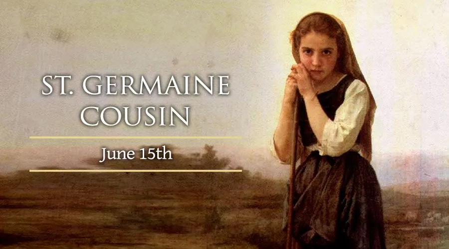 June 15 is the feast day of St. Germaine Cousin, a simple and pious young girl who lived in Pibrac, France in the late 1500s. Germaine was born in 1579 to poor parents. Her father was a farmer, and her mother died when she was still an infant. She was born with a deformed right arm and hand, as well as the disease of scrofula, a tubercular condition.
