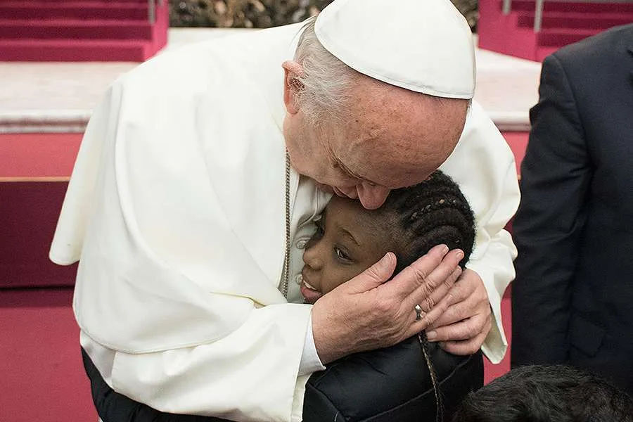 Pope Francis hosts a pizza party for sick children in Vatican City on Dec. 17, 2017. Credit: Vatican Media.