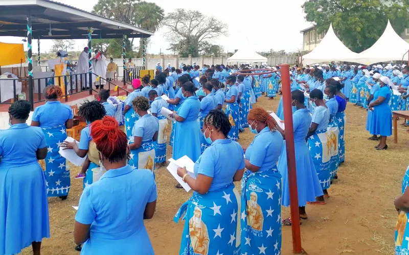 Bishop Willybard Lagho commissions 160 new members of the Catholic Women Association at Bishop Francis Baldacchino Primary School Grounds on 29 August 2021. Credit: Catholic Diocese of Malindi/Kenya