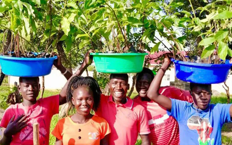 The produce, Fr. Arasu says, is generously shared by the students who planted and cared for them. Vegetables and fruits also boost the diet at the refugee camp where most meals include boiled maize and beans.