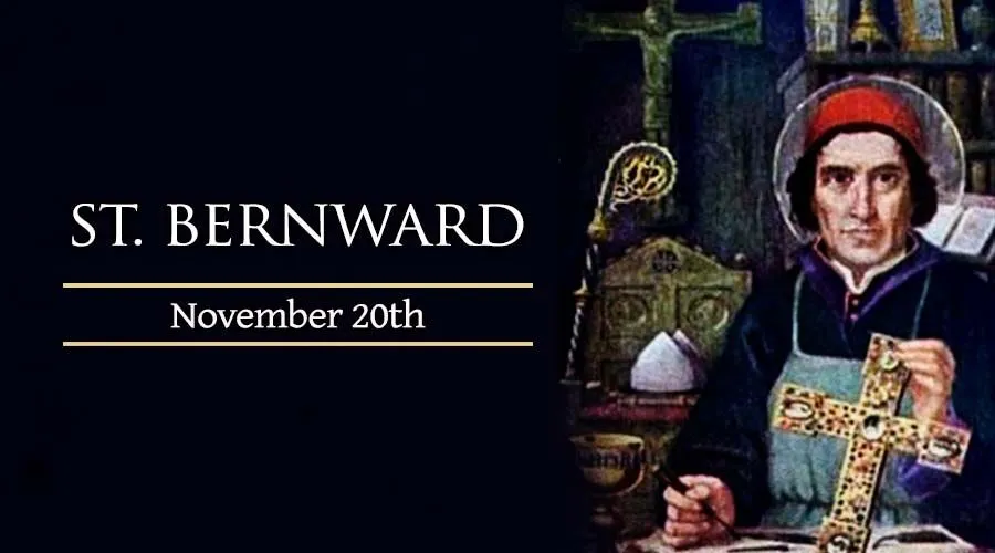 Saint Bernward served as the thirteenth Bishop of Hildesheim, Germany during the middle of the tenth century. His grandfather was Athelbero, Count Palatine of Saxony. After having lost his parents, Bernward was sent to live with his uncle Volkmar, who was the Bishop of Utrecht. His uncle enlisted the assistance of Thangmar, the pious and well-educated director of the cathedral school at Heidelberg, the help with Bernward's education.
