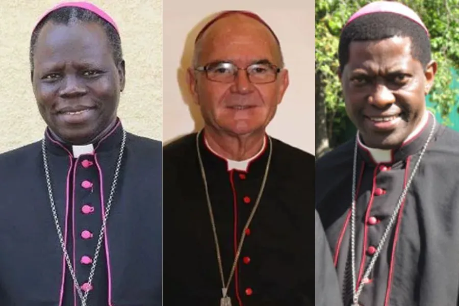 Archbishop Stephen Ameyu Martin (left), Archbishop Stephen Brislin (center) and Archbishop Protase Rugambwa (right) among the 21 cardinals named by Pope Francis on July 9, 2023.