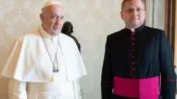 Archbishop Giovanni Gaspari with Pope Francis in Rome. Credit: Vatican Media