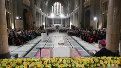 The pope addressed more than 2,500 priests, deacons, religious sisters, seminarians, catechists, and bishops gathered inside the National Basilica of the Sacred Heart in Brussels.