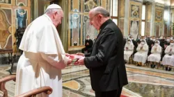 Pope Francis meets members of Rome’s Pontifical Lombard Seminary at the Vatican’s Clementine Hall on Feb. 7, 2022. Vatican Media.