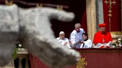 Pope Leo XIV consecrated Mons. Mirosław Stanisław Wachowski a bishop during a Mass at the Altar of the Chair in St. Peter’s Basilica on Oct. 26, 2025.