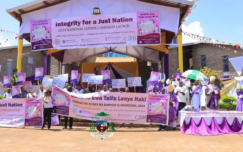 “Our journey towards social justice must begin with a balanced approach to taxation and a concerted effort to alleviate the high cost of living ensuring that the backbone of our nation, the Kenya Citizens, are not only surviving or hustling but enjoying a dignified life,” KCCB members say in the message that was read out during the launch of the 2024 Lenten Campaign Sts. Peter and Paul Cathedral grounds of Embu Diocese.