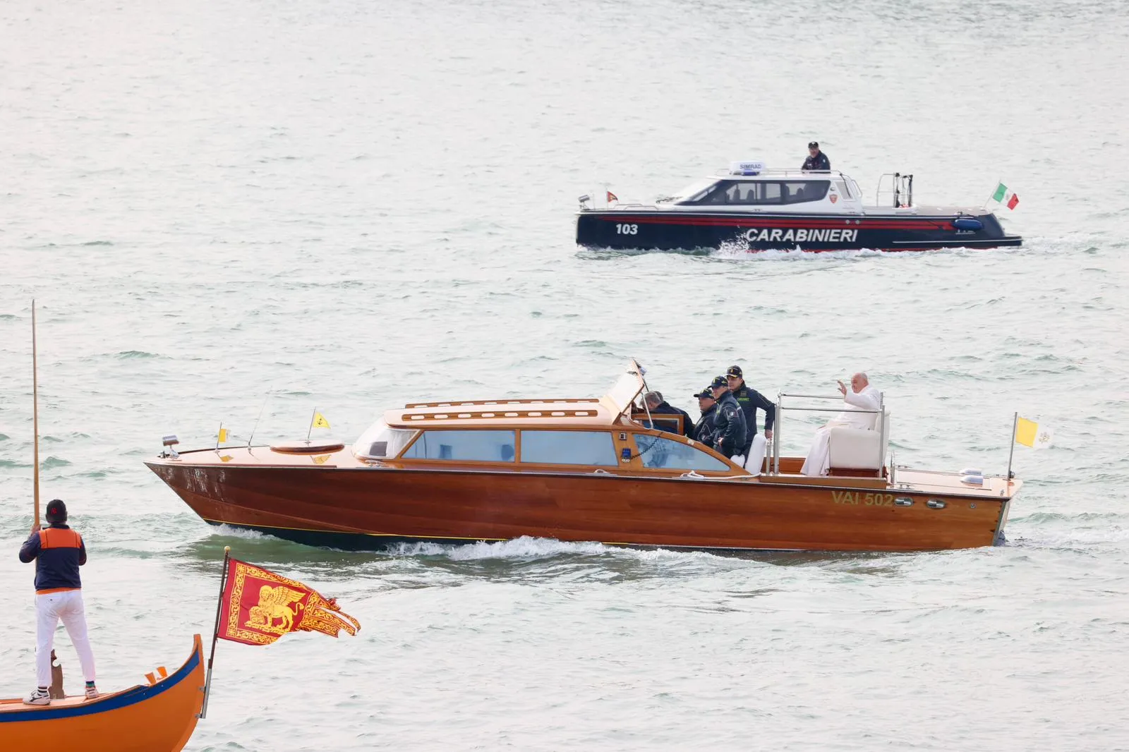Pope Francis left the Vatican by helicopter at approximately 6:30 in the morning, arriving in the Floating City by 8 a.m. The pope’s visit, albeit short, holds a deep meaning as Francis is the first pontiff to visit the prestigious Venice Biennale art exhibition, which is marking its 60th iteration. As part of the exhibition the Holy See has erected a pavilion at the women’s prison titled “With My Eyes.” The pope also spoke with artists while he visited the pavilion.