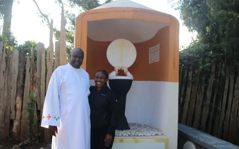 Fr. Philip Kimaiyo poses for a photo with a pilgrim at the Eucharistic Center Burnt Forest in Kenya's Catholic Diocese of Eldoret. Credit ACI Africa