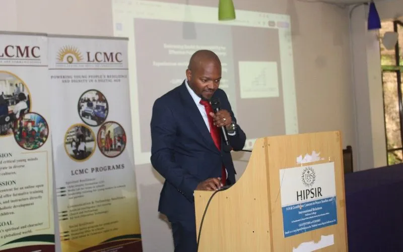 Kevin Osido, the Executive Director of the County Governance Watch (CGW) presenting during the February 10 to 12 workshop at the Hekima Institute of Peace Studies and International Relations (HIPSIR) at Hekima University College. Credit: ACI Africa