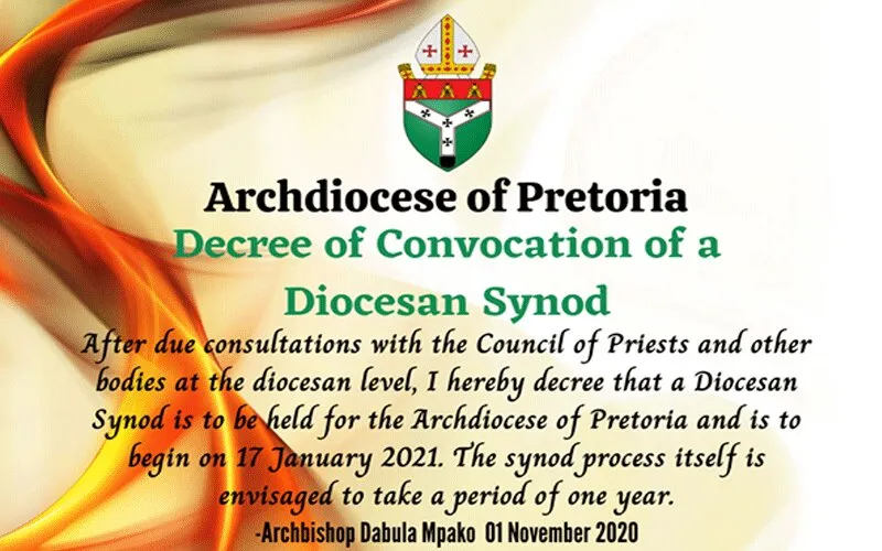 In the Sunday, November 1 statement, Archbishop Dabula Anthony Mpaka of Pretoria says that the Diocesan Synod, which has been scheduled to start on January 17, 2021, will focus on reviewing “the life, functioning and ministry of the local Church of the Archdiocese of Pretoria.”