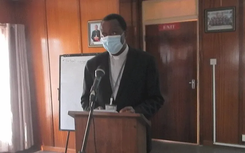 Bishop George Zumaire Lungu of Zambia’s Chipata Diocese speaking at the opening of a two-day workshop on peacebuilding in Zambia's capital Lusaka.