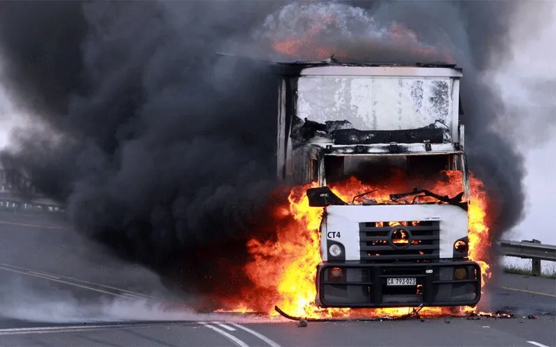 “As South Africans, we cannot possibly tolerate the mindless and bloody lawlessness with which the road freight industry is being targeted,” President Ramaphosa said, and added, “We cannot tolerate this loss of life and destruction of property.”