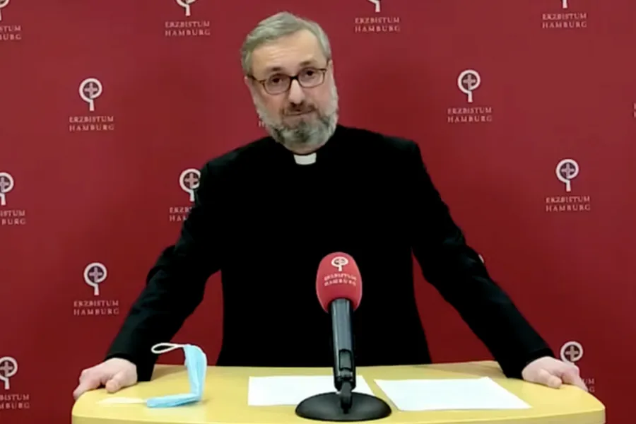 Archbishop Stefan Heße of Hamburg, Germany, makes his announcement on March 18, 2021 / YouTube screenshot