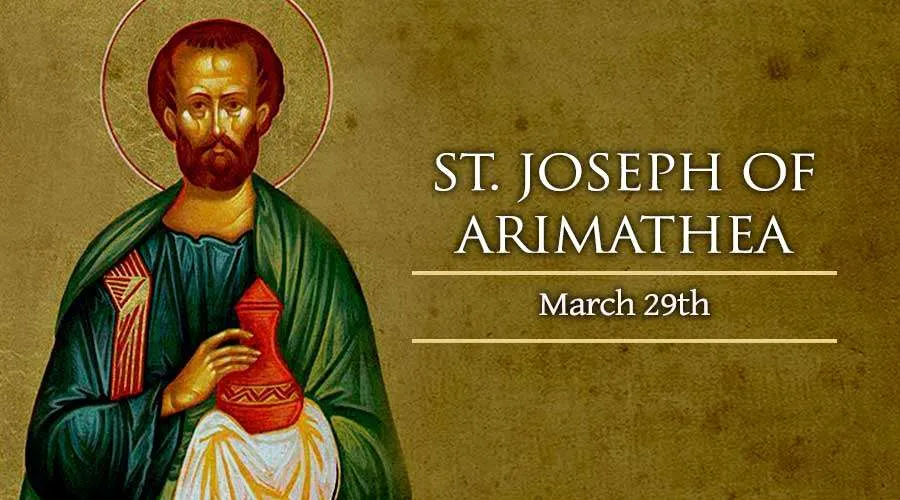 St. Joseph of Arimathea is a disciple of Jesus Christ who is mentioned in each account of the Passion narrative. After the Passion of the Lord, Joseph, a member of the Jewish council went to Pilate and asked for possession of the body of Jesus. After receiving this permission, Joseph had Jesus laid in a nearby tomb.