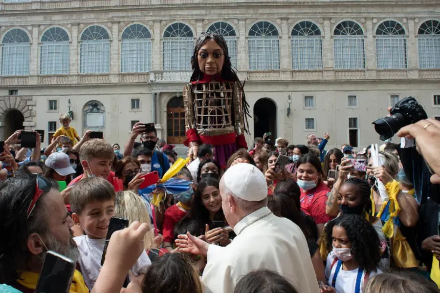 Pope Francis Welcomes 11-foot-tall Puppet Symbolizing Unaccompanied Refugee Children