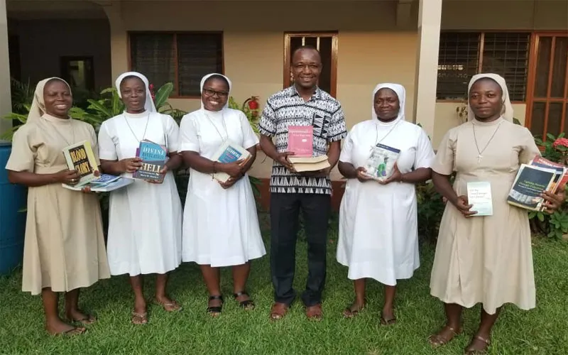 Sisters of the Congregation of the Handmaids of Divine Redeemer (HDR) posing with some of the Books they presented to Fr. Patrick Tindana, Director of Mission of Office of the Accra Archdiocese at the Holy Spirit Cathedral, Adabraka, Accra, Ghana