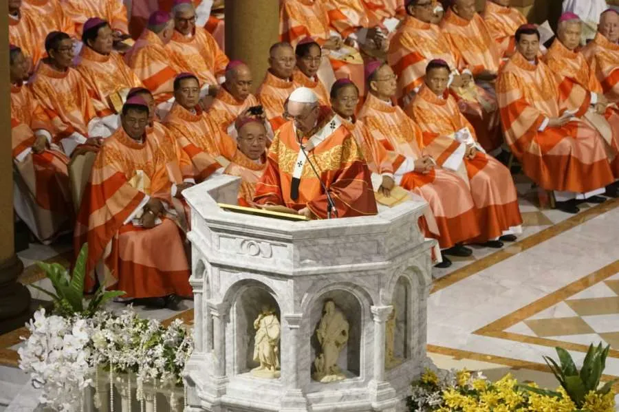 “The secret to a happy heart is the security we find when we are anchored, rooted in Jesus: in his life, in his words, in his death and resurrection,” Pope Francis said Nov. 22 in his homily at the Cathedral of the Assumption in Bangkok.