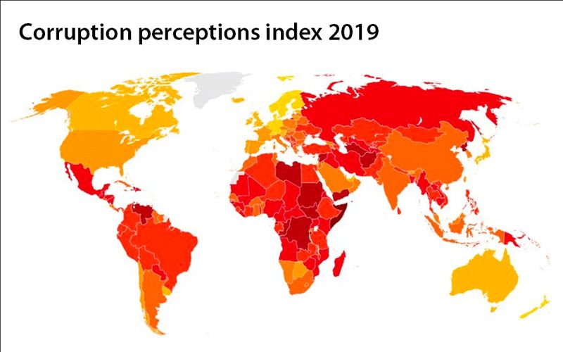The 2019 CPI published January 23 “ranks 180 countries and territories by their perceived levels of public sector corruption, according to experts and business people” on a scale of 0-100, with 0 counting as “highly corrupt” and 100 counting as “very clean.”