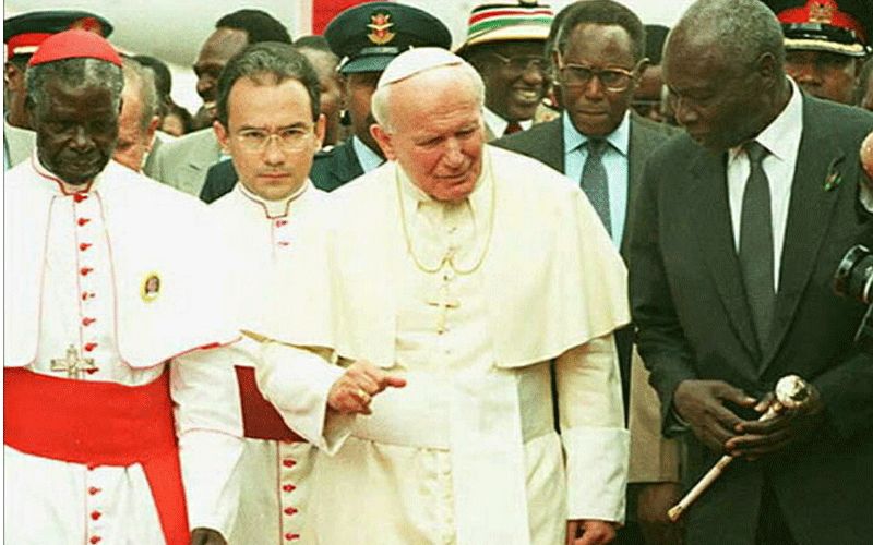 Pope John Paul II, while visiting Kenya for the first time in May 1980 and after kissing the ground upon arrival was greeted by Moi, senior government officials, and members of the diplomatic corps. And while addressing hundreds of thousands of people in Kenya’s Uhuru (freedom) Park in his maiden speech, the Pope urged the Catholics in Africa to adhere to the church's strictures on abortion, sterilization, and polygamy.
