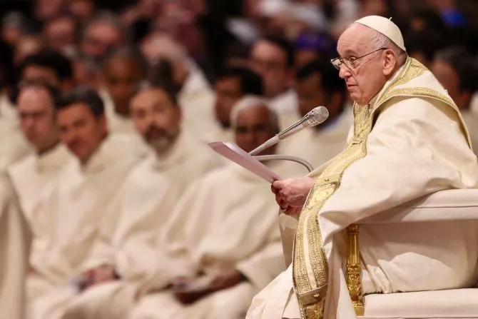 Pope Francis at the Easter Vigil Mass at the Vatican on April 8, 2023. Daniel Ibanez/CNA