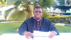 Fridolin Cardinal Ambongo (left) and Fr. Rafael Simbine Junior (right) during the 25 April 2024 press conference. Credit: ACI Africa
