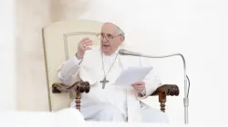 Pope Francis at the general audience in St. Peter's Square on April 20, 2022. Daniel Ibanez/CNA