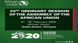 Poster of the 33rd Ordinary Session of the Assembly of the African Union that took place in Addis Ababa, Ethiopia: February 9-10, 2020 under the theme, “Silencing arms to create conditions conducive to the development of Africa.” / African Union