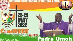 A Poster announcing Fr. Mike Umoh's  lecture on day two of Communications Week (COMWEEK). Credit: CTV Abuja