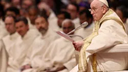 Pope Francis did not preside over the Easter Vigil Mass, but he delivered the homily and baptized seven people.