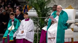 Pope Leo XIV consecrated Mons. Mirosław Stanisław Wachowski a bishop during a Mass at the Altar of the Chair in St. Peter’s Basilica on Oct. 26, 2025.